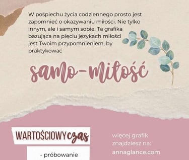 Przygotowałam propozycje aktywności do każdego z tych pięciu języków, które pozwolą Ci praktykować miłość do siebie, czyli inaczej samo-miłość.