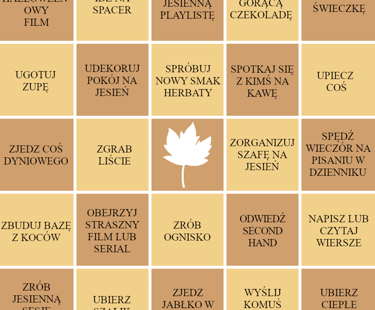 Zacznij jesień wykonując zadania z grafiki BINGO.