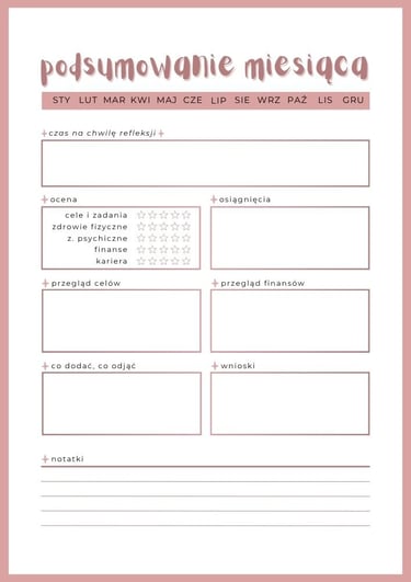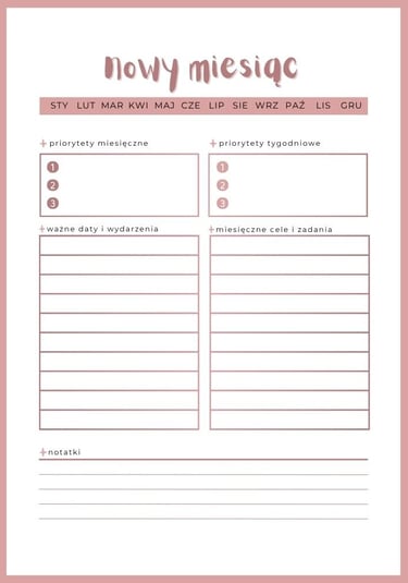 Szablony na początek i koniec miesiąca, które pomogą Ci dobrze zacząć nowy miesiąc.