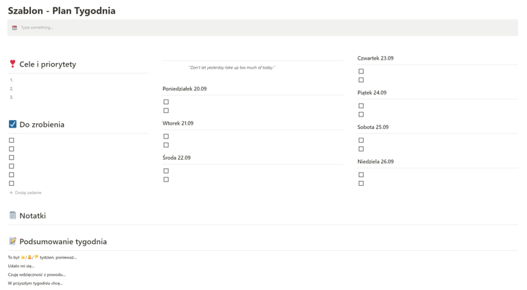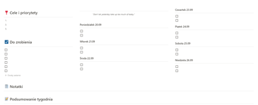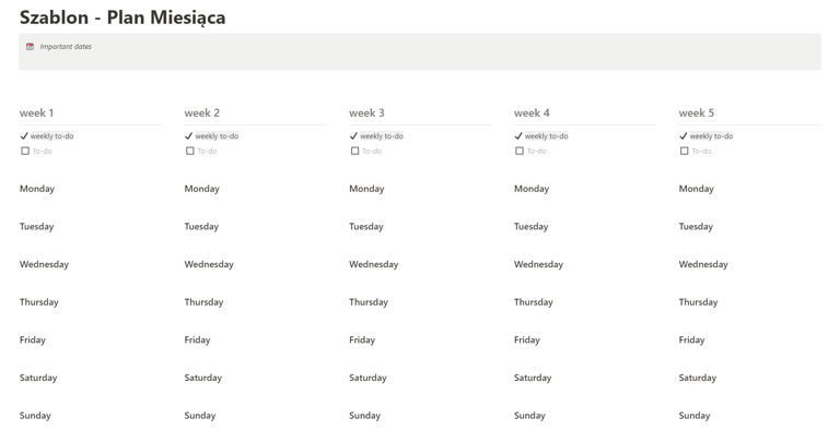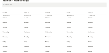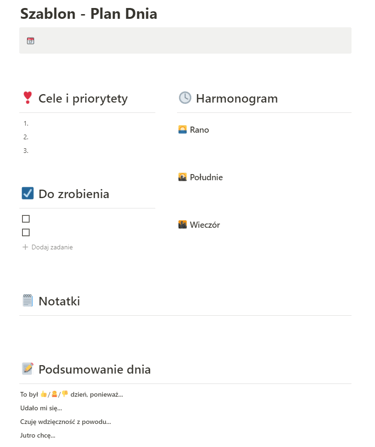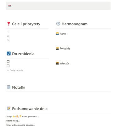 Rozkład dniowy, tygodniowy i miesięczny do planowania czasu w aplikacji Notion.