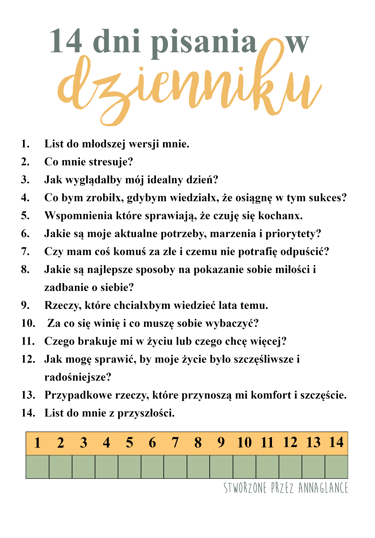 pisać, a na dole strony - miejsce do zaznaczania dni/tematów, które już udało Ci się wykonać.